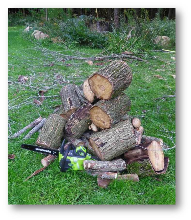 Now, if you’re a die-hard woodsman or woodswoman, don’t laugh too hard at the idea of a battery-powered chainsaw. I do have gas-powered Stihl 250 for really heavy work, but I use the battery saw for about 90% of my cutting! The technology has come a long way in the past 5 years, much owing to better batteries, higher voltages, and brushless electric motors with good torque.