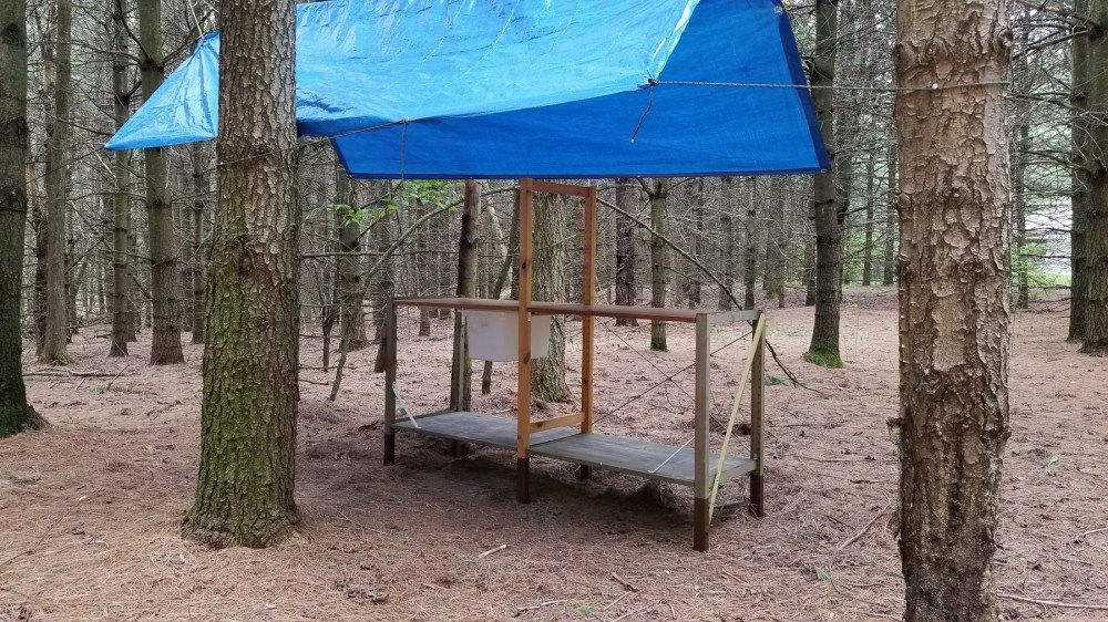 For Yurt Camping guests, there is a covered area near the fire pit with a little workstation they can use for food prep, etc. Last summer, one of my guests suggested it would be nice to have more “counter space” to work with.