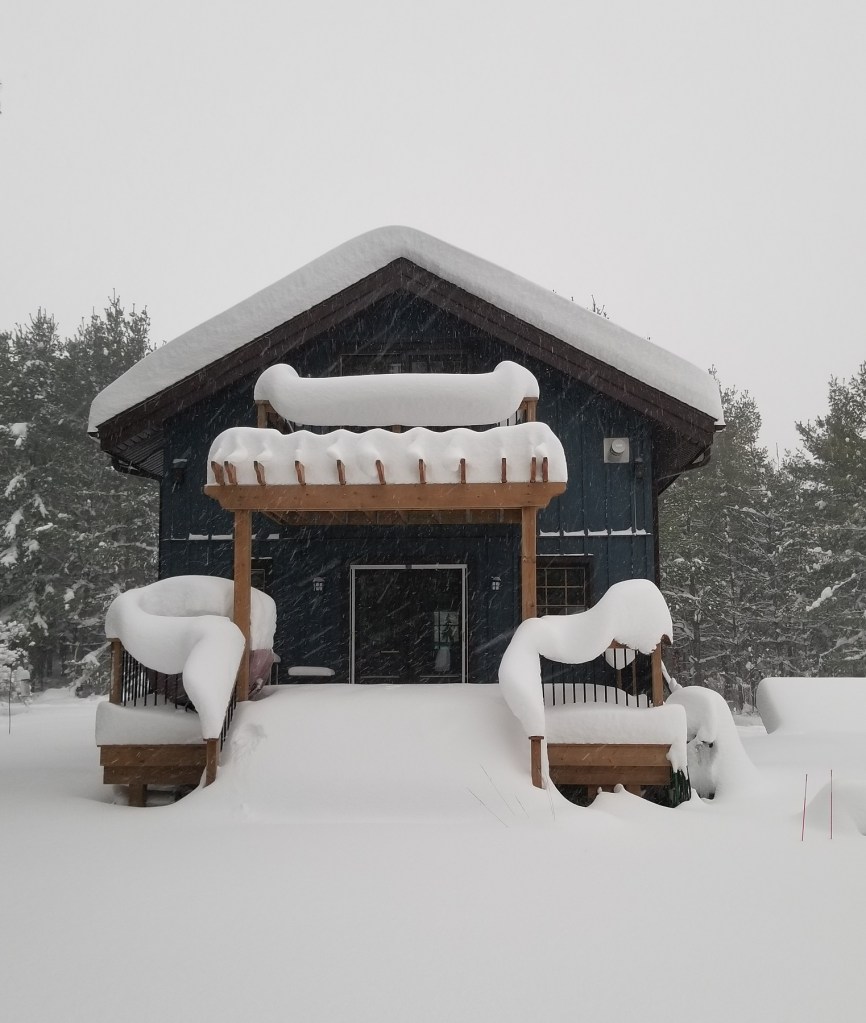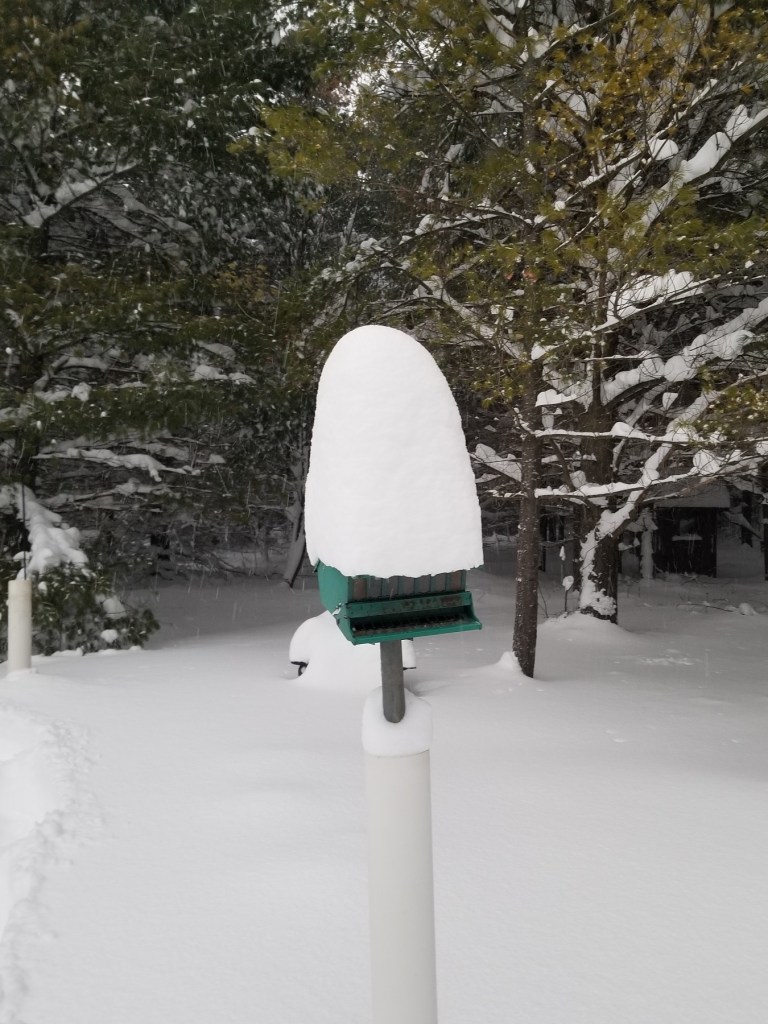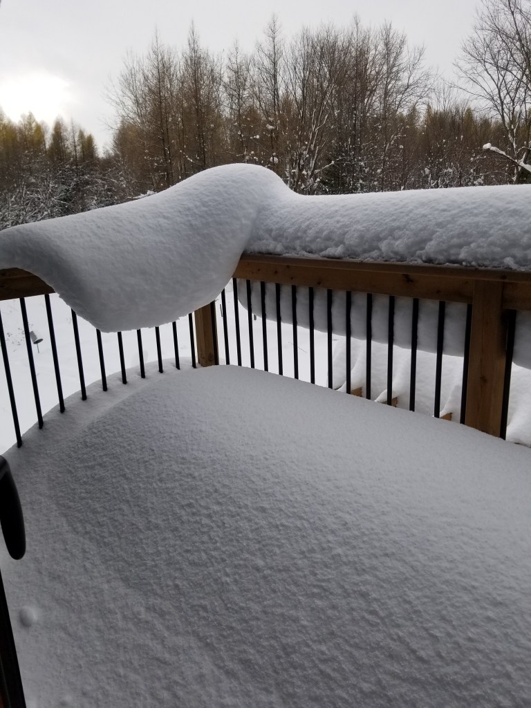Up here in northern Grey County we are in the snow belt of Lake Huron and while snow is no stranger in November (or even late October), I have never seen anything like this in my 13 years here. For three days a snow squall band was sucking moisture off the lake and dropping it as snow over land. Sometimes these bands shift and move. And, well, sometimes they don’t 😦
