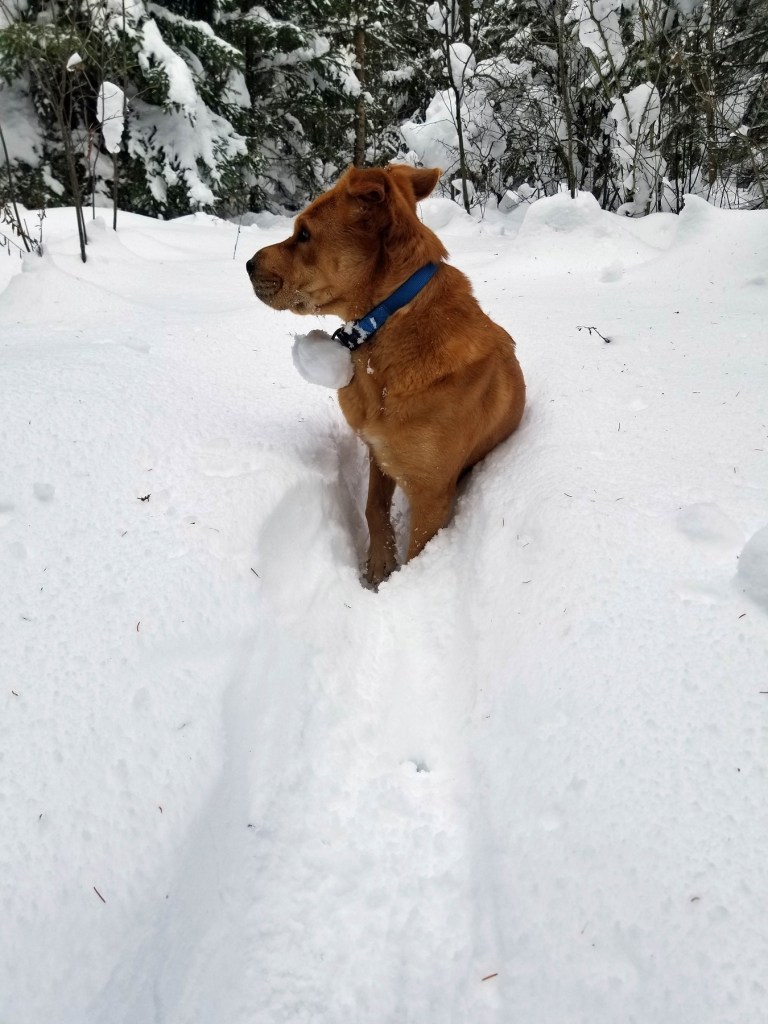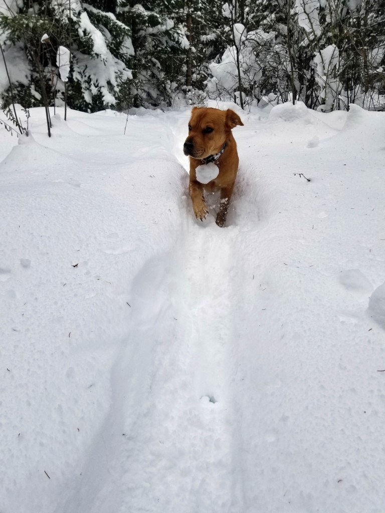 But when it’s sticky packing snow, each time her collar tag…