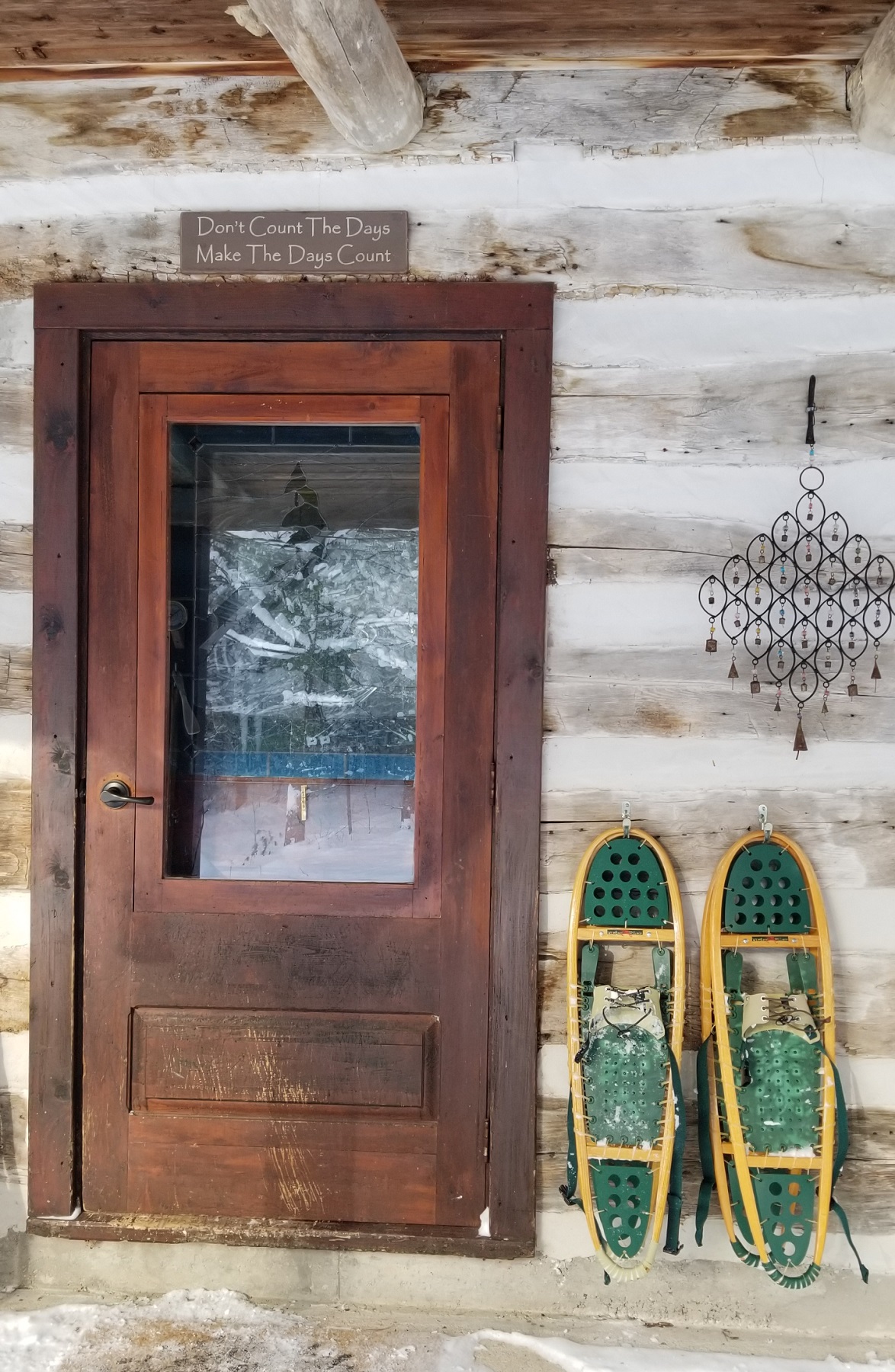 If you’re a guest who loves snow, you’ll be in heaven, it’s a winter wonderland. And if you don’t have your own snowshoes, there are a couple loaner pairs hanging on the outside of the Guest Cabin. If you’d rather be warm and cozy looking out at a snowy forest than actually march around in it, you’ll be happy too! There’s a trodden down path along the short trail from parking to cabin, no snowshoes required.